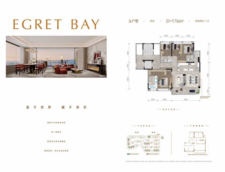 【锦院户型亮点】A户型176㎡户型: 端户享270°全景视野;7.8米开阔横厅