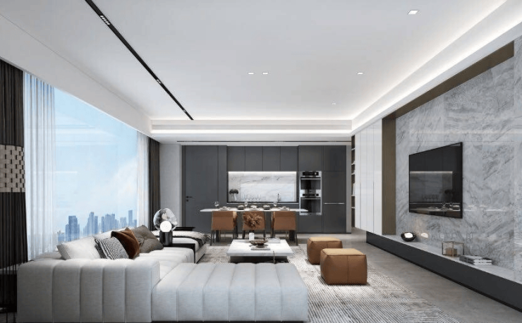 麓府公馆的室内装修,以现代简约的黑白灰为基调,通过大量色彩的空间留白,营造时尚简约、色彩平衡、轻奢高雅的空间视觉平衡。通过不同装饰材料的色彩搭配,在高低饱和度的调和中,实现视觉的完美过度。整个装修布局,强调轻、净、雅的相谐相融,在轻奢高雅的格调中,实现现代空间美学的最大还原。