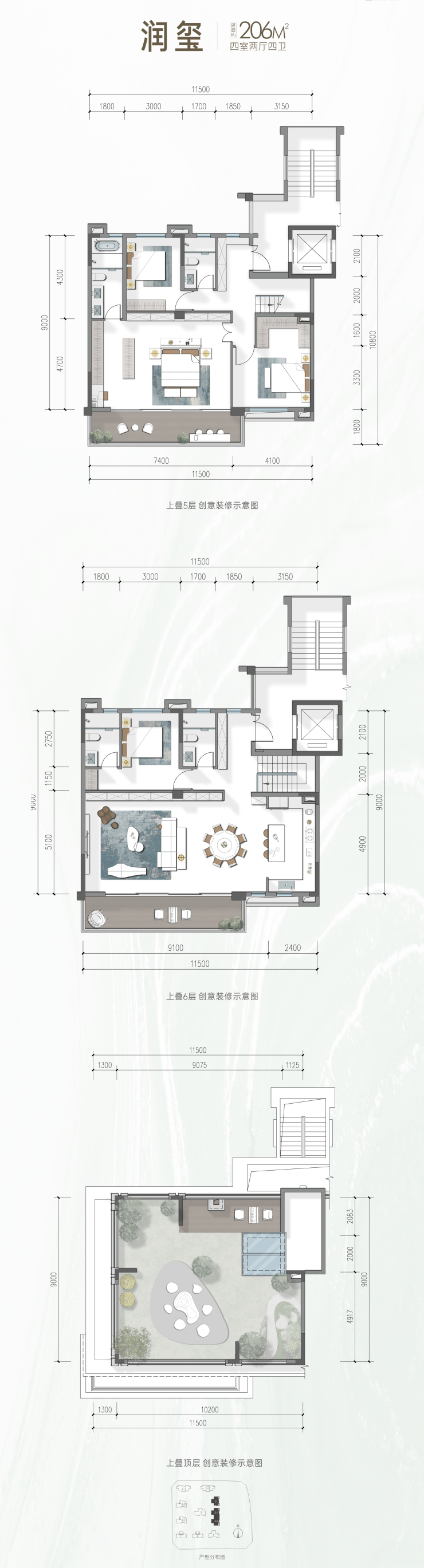 全盘1T2户,含17层小高层(116-172㎡)和6层叠拼(206-218㎡)