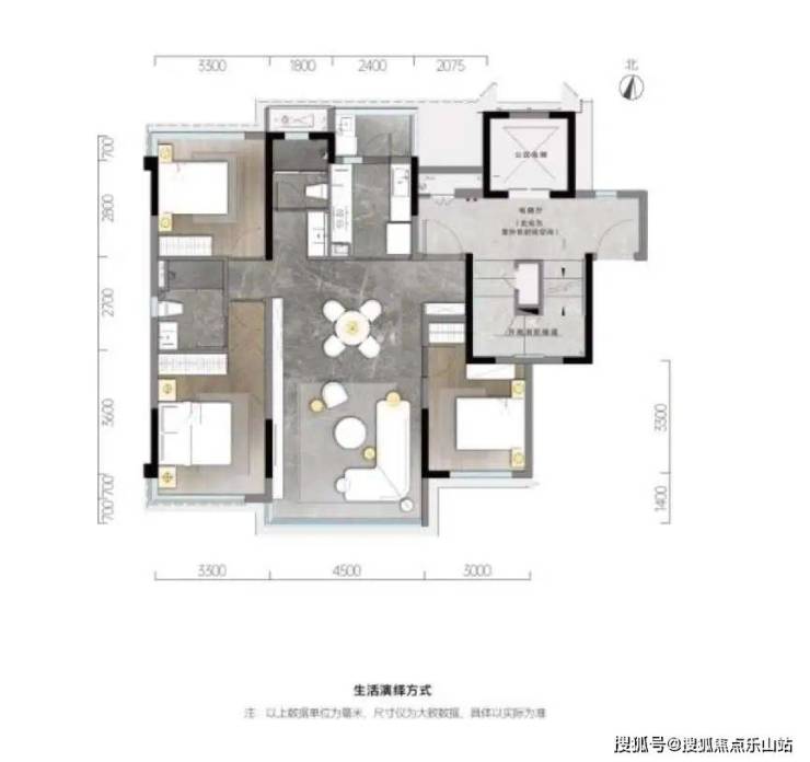 如果预算有限的购房者,也有建面约110m²的户型作为选择,这套户型中,南北通透的布局使得采光和通风都有最基本的保障,转角窗的设计——意味更多的自然光、更广更远的视野、更加通透的空间感;客厅书房全落地窗设计,让屋子享受到更多的阳光,双卧室转角窗也让生活的每一刻都有阳光、美景相伴。