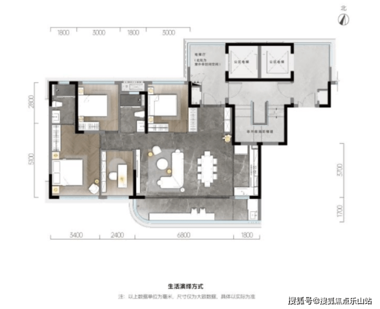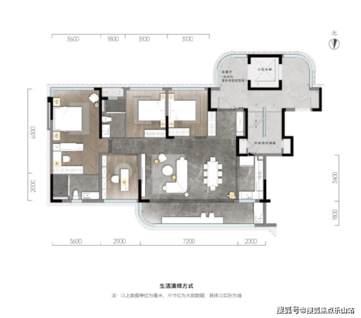 建面约143㎡的户型是主打的明星,该户型是1梯2户,约3.1米建筑层高,LDK餐厨一体,增大采光及观景,营造高标准的生活品质。大面宽约9.2m的弧形景观阳台,既保证了视野的广阔,也让风景与空间无界。进深约8.3米雅奢酒店式主卧套间,转角落地窗设计,盛满了生活的优雅体面。