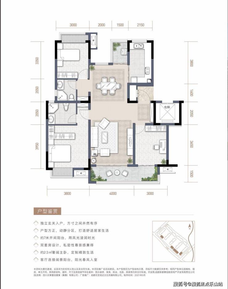 【纯板式结构,围合式布局】:板式结构通透设计,南北通透;围合式布局,约65米超宽楼间距,空间最大化确保私密性和宽阔视野