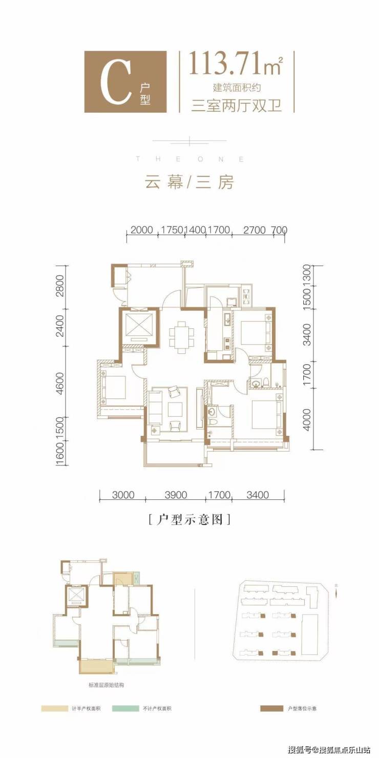 ---户型鉴赏-C户型,约113㎡,经典三房,南北对流,动静动能分区。-户型亮点:1梯1户小高层,南北朝向,三房双卫,利用率高,层高3米,电梯直接入户,户型非常方正实用,采用竖厅布局。