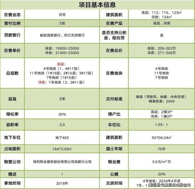 ✅物业费:高层、洋房3元/叠拼4.5元