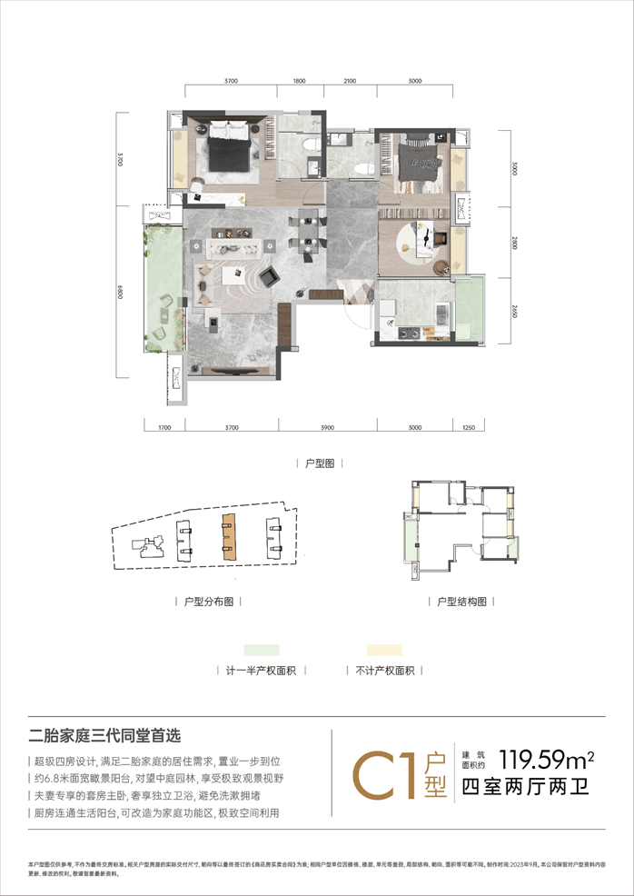 75㎡神户型:明厨明卫+6.2米景观阳台(同面积段唯一)