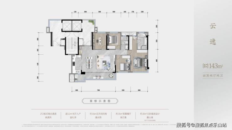 产品面积:建面约125-143㎡宽境四居