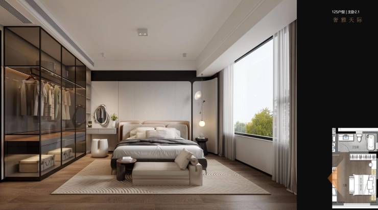 125m²套四双卫横厅设计,大四房得房率107%,套内实得面积约133m²媲美市场其他产品143m²左右套内实得面积