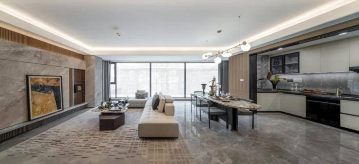 设计不算复杂,但也通过各种细节将归家的仪式感拉满,例如地下入户大堂定制的琥珀式星空顶、首层入户大堂大面积玻璃幕墙的设计等。