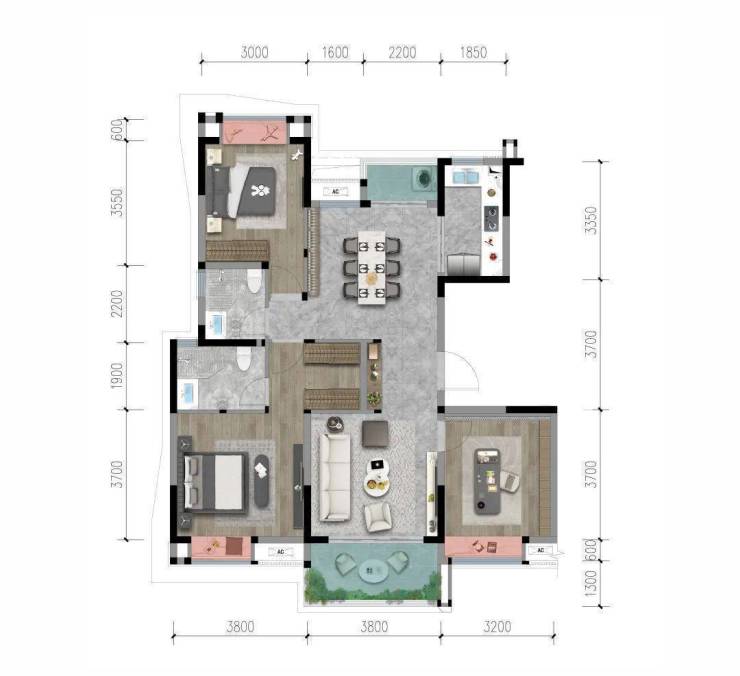 山河赋洋房产品展现出极强的产品力,我们结合建面约143.5㎡套四户型来感受下。
