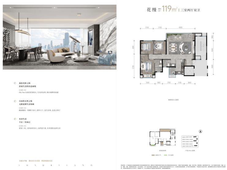 119平套三双卫户型图横厅如下: