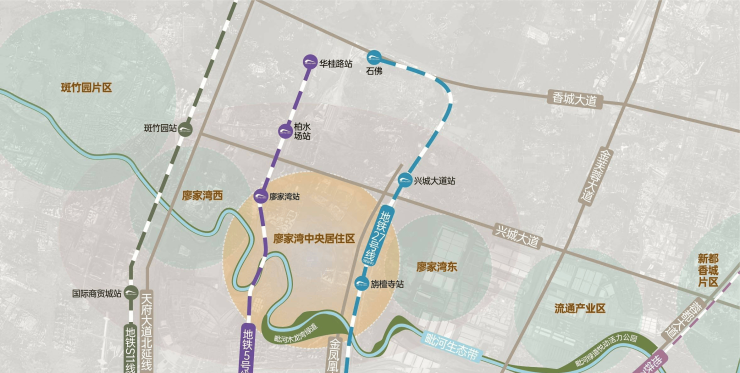 Part 城北廖家湾——北向桥头堡万科在成北深耕近 20 年,此次再度将目光聚焦廖家湾。这里占据着成都都市圈北部中心的关键节点,不仅能共享城北热闹的烟火气,更蕴含着未来高潜力规划的价值。天府大道北延线的建设,为廖家湾带来全新机遇。天府大道北延线堪称全球最长的城市中轴线,依据成都新版总规中“推动成德眉资同城化发展,打造具有全国影响力的现代化都市圈”这一规划方向,天府大道两侧汇聚了成都的政治、经济、文化以及商业等众多重要元素,高度彰显了城市的价值资源。而廖家湾紧挨着这条中轴线的经济门户,未来必将构建起产业互动的崭新格局 。
