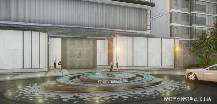 尊享归家显赫:约300m递进式景观轴线,串联归家九重礼序,为全年龄段的业主打造充满艺术,品质,温度的共享公共空间,呈现高奢酒店式的会所生活场景第一重:落客礼序-琉光环岛