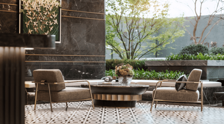 在园林景观与架空层精装设计上,麓湖西派臻境也进行了创新,其中让我们印象深刻的是其“无界”的造景手法。