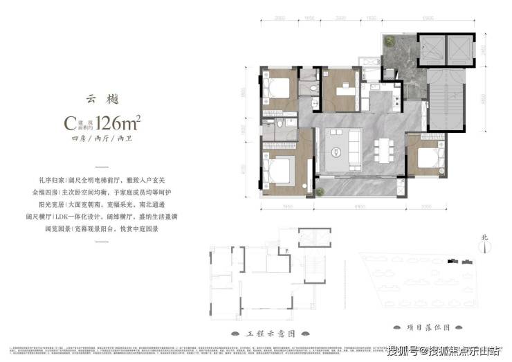 户型面积:建面约108-139㎡(全系四房2 卫)