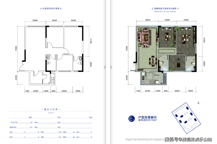 SOHO:E1户型建筑面积约106㎡
