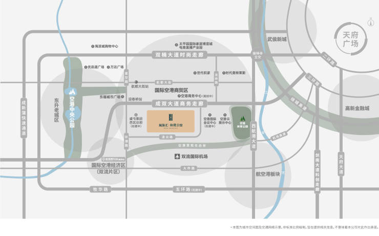 项目位于国家级临空经济示范区——双流空港商务核心区、占据双流桥梁与城市门户位置,一带一路总部首站地。