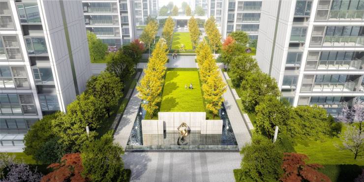 ▶以中轴串联5个不同主题园林场景和多个宅间休闲区,感受四季不同景色。