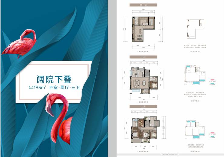 叠拼产品详情:1、4F悠云A(下叠) 建面约193㎡ 四室两厅三卫(赠送面积约:190-330㎡)