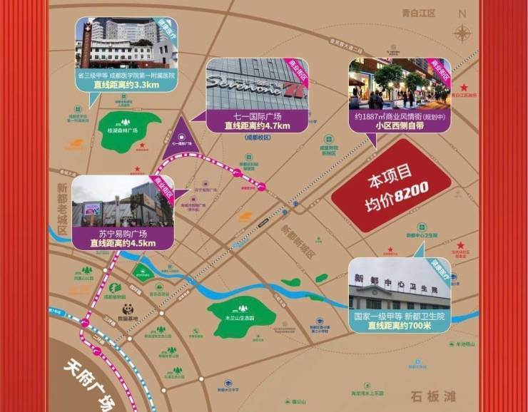 ③医疗:距新都区新都中心卫生院直线约600米,距成都医学院第一附属医院直
