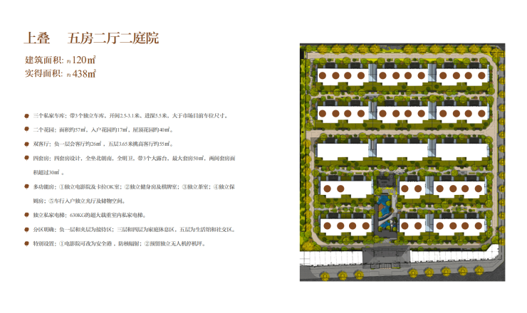 建面约120㎡,实得438㎡,带3个独立车库