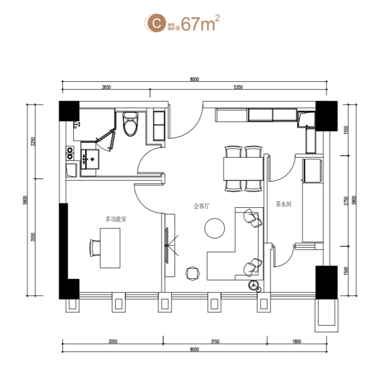 户型:标间(约43—52㎡)/套一(约62—67㎡)/套二(约67—87㎡)/套三(约84—117㎡)