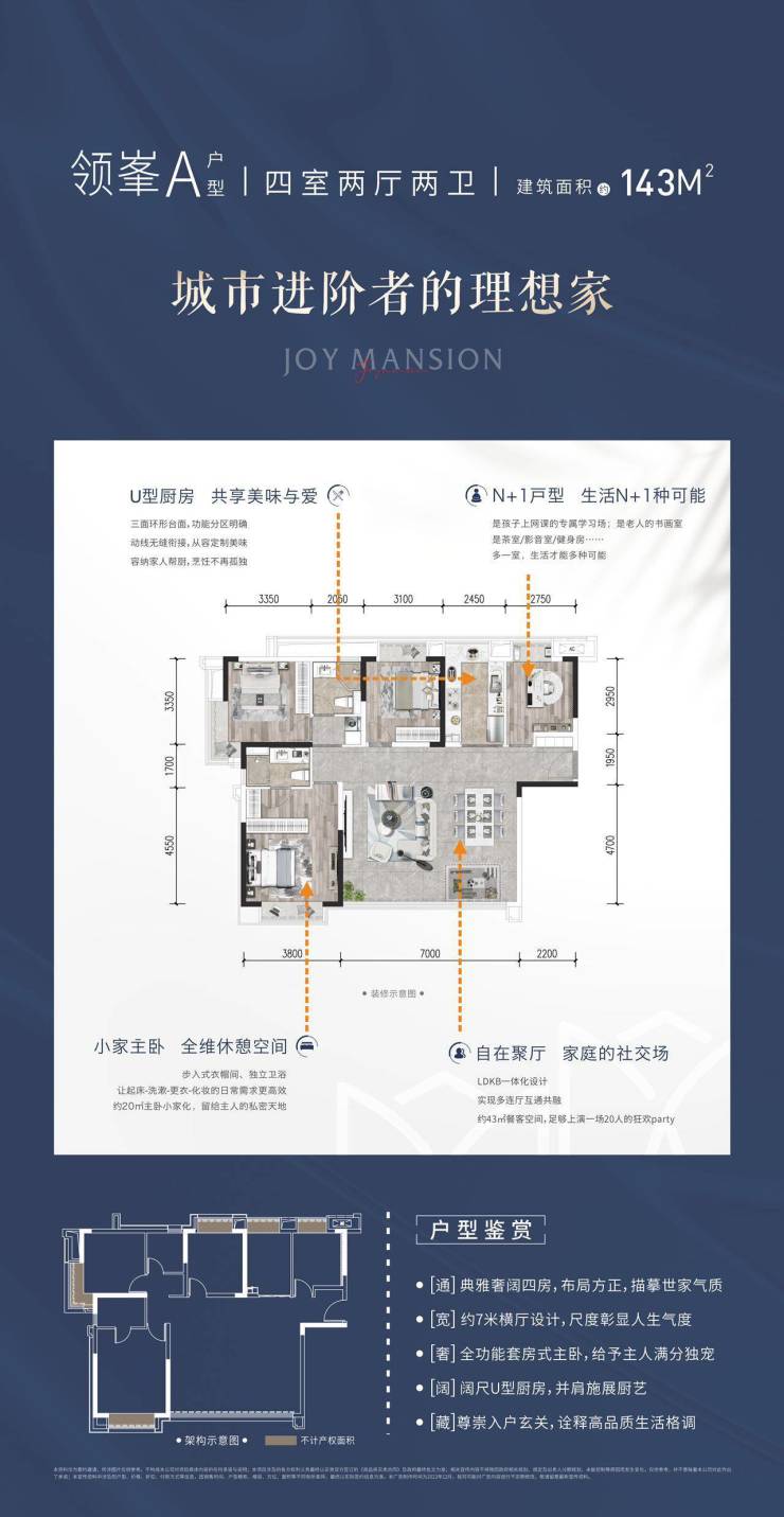 领峯A户型|143㎡4室2厅2卫城市进阶者的理想家