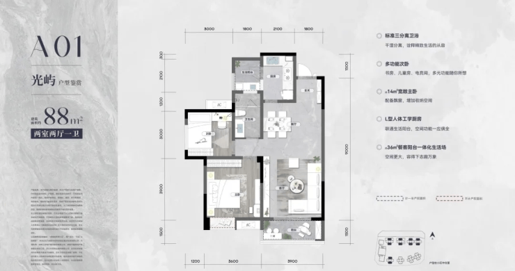 约88㎡户型创意样板间