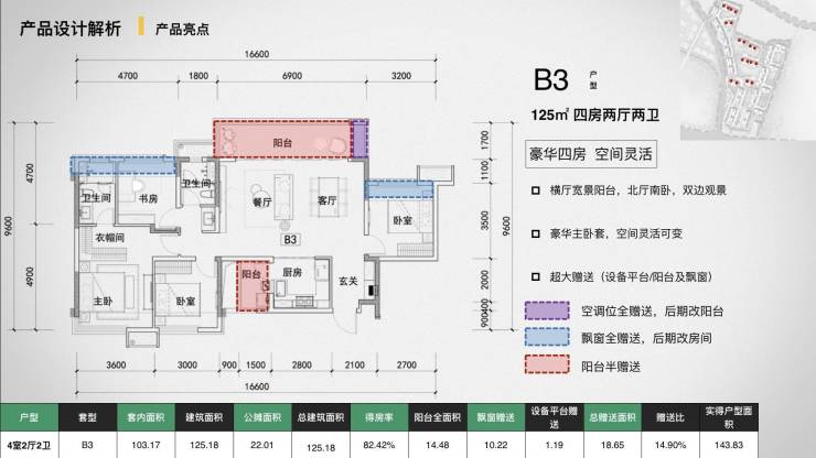 超低公摊:103㎡做套三双卫,对比同面积段竞品多5㎡实用面积
