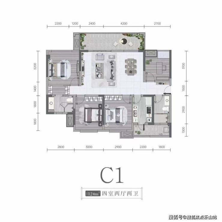 【124㎡四室两厅两卫】享中庭景观