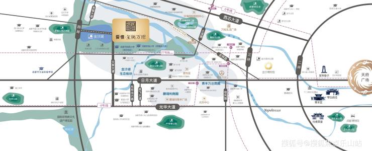 项目交通条件呈现出"主干道便利、轨道交通待完善"的特点。在城市道路方面,周边有绕城高速、三环路、日月大道、西源大道和光华大道等城市主干道,通过文家路、土龙路等区域道路可快速接驳这些主干道。特别是日月大道快速路距离项目仅1.2公里,绕城高速文家场立交距离约3.5公里,为自驾出行提供了便利条件