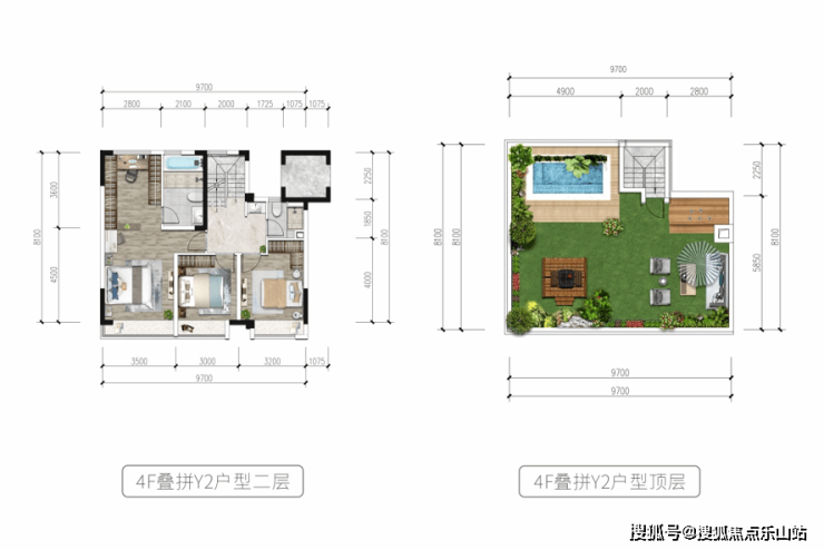 4F上叠(174㎡):赠送屋顶花园64㎡+独立电梯,7米横厅,南北通透主卧,适合改善家庭。