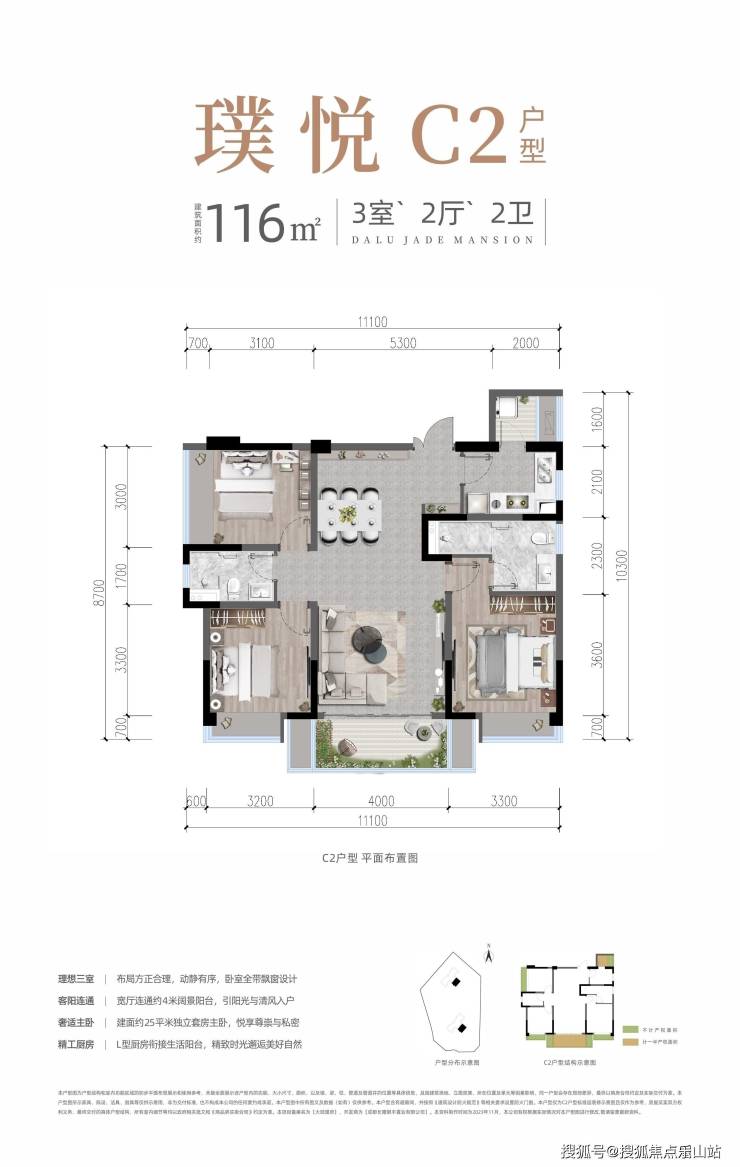 项目占地:约14亩产权年限:住宅70年物业公司:大陆英联华物业费:3.2元拿地时间:2019年交房时间:2025.6.30日装标:2950梯户比:2T3户容积率:2车位比:1:1.5总户数:142套总层高:25层项目产品:建面约116—135.6㎡均价:26500元/平
