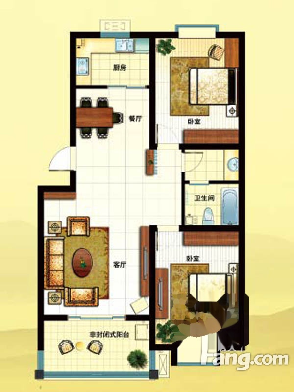 2室2厅1卫-一期D1户型
