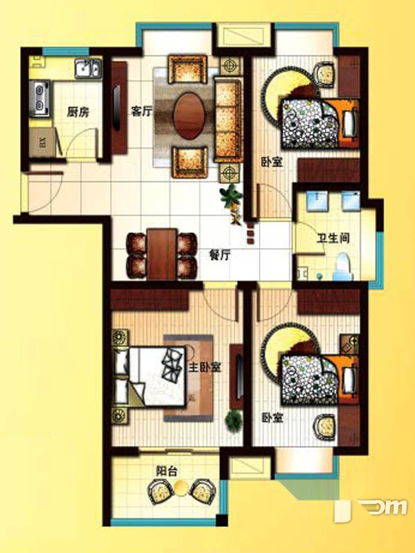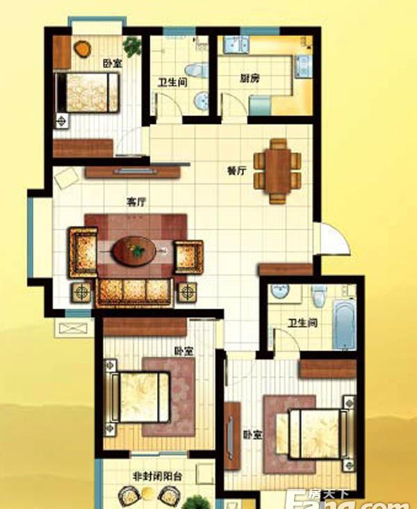 3室2厅2卫-一期B1户型