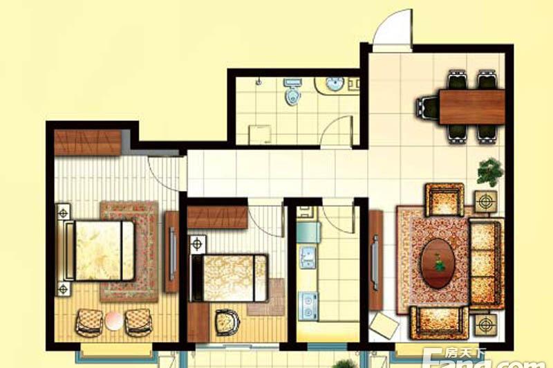 2室2厅1卫-一期F1户型