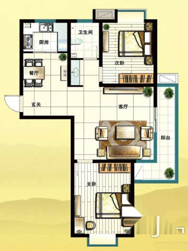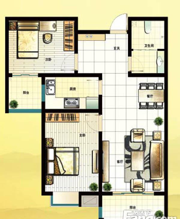2室2厅1卫-一期E2户型