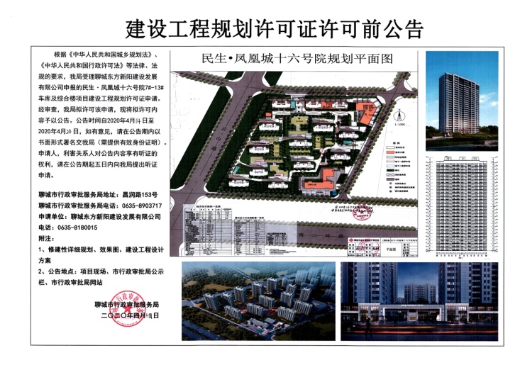 民生·凤凰城十六号院项目建设工程规划许可证许可前公告