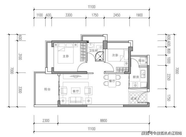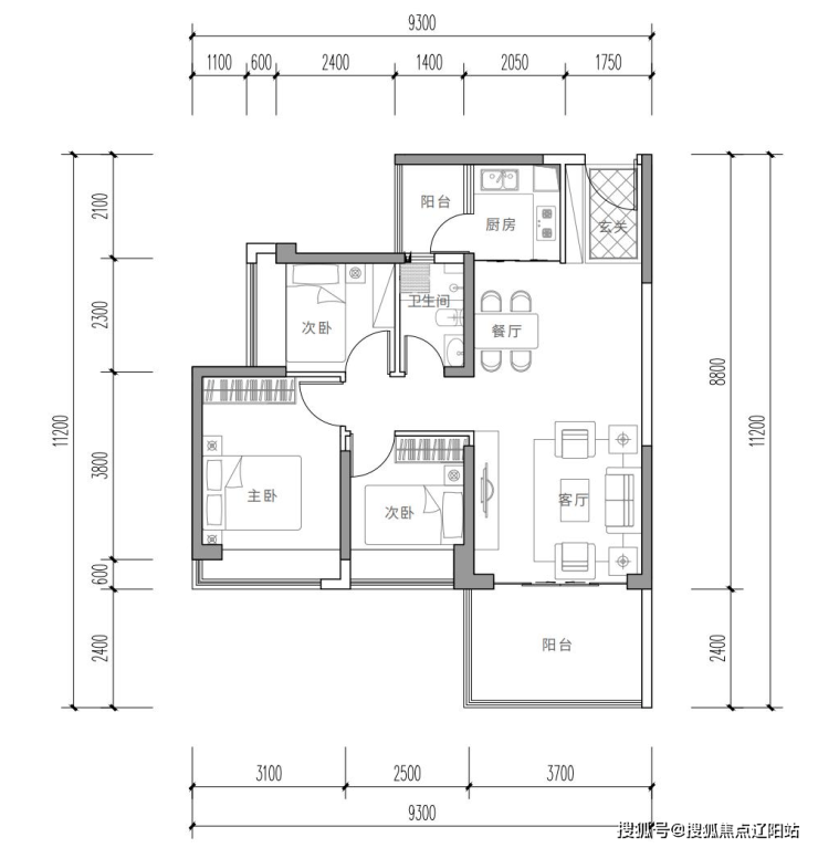 精致两房,紧凑实用,全利用空间,正南户型,动静分区互无干扰,干湿分离,双阳台设计, 2.3m*3.3m阔景阳台,舒心自在。