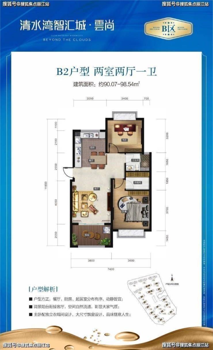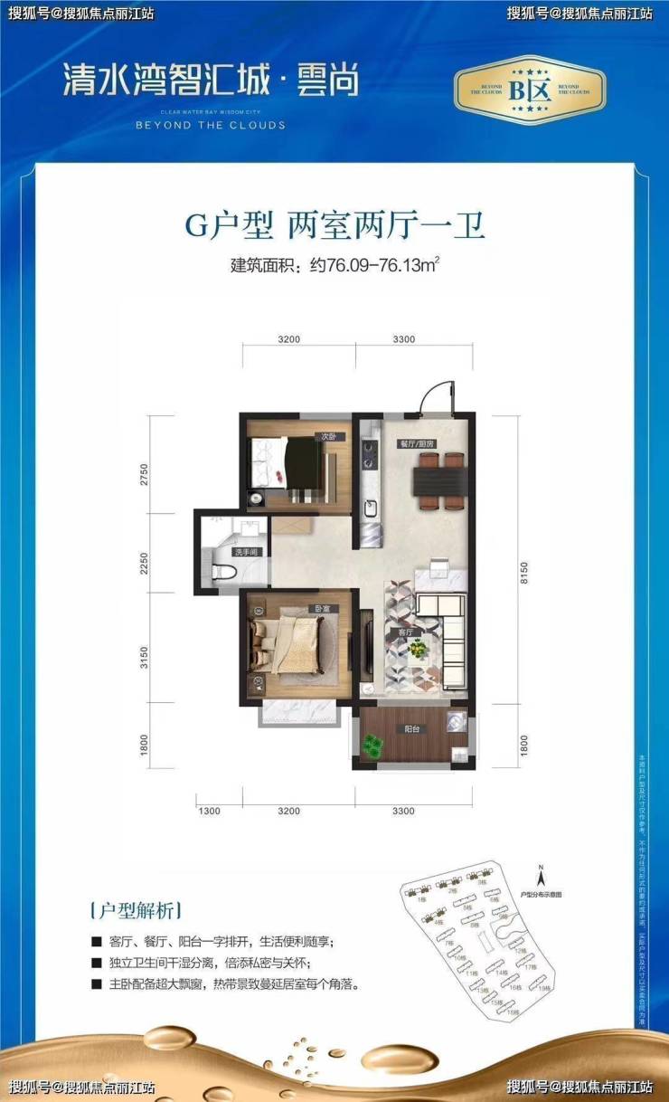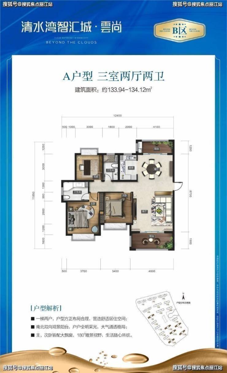 在售产品:76㎡-99㎡两房(A、B组团),134㎡三房(B组团)