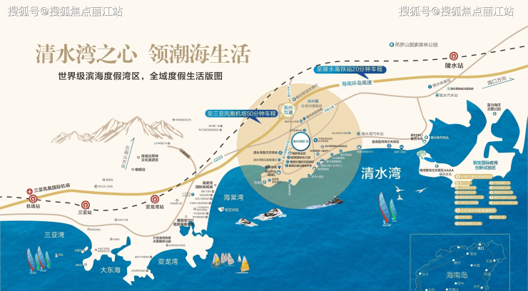 项目地处北纬18°以南,距三亚市区直线距离约45公里,尊踞大三亚醇熟生活圈;位于清水湾度假区中央核心,坐拥清水湾万亩文旅醇熟配套,紧邻陵水黎安国际教育创新试验区,致力于打造清水湾片区产品标杆。