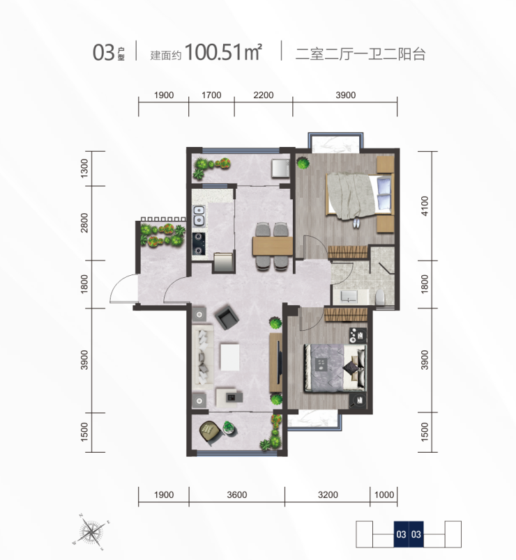 03户型丨建筑面积约100.51、100.73㎡