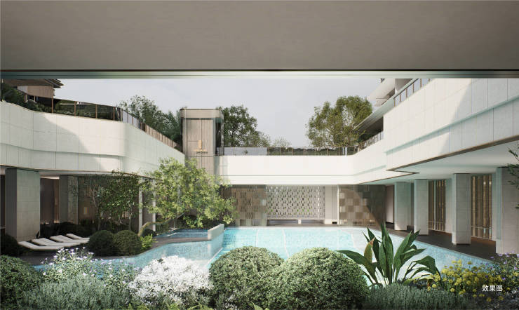 •艺术泛会所:L 型贯通下沉庭院,融入景观,含健身区 & 瑜伽房、景观泳池、行政酒廊 & 茶吧 / 书吧、业主食堂 & 私宴厅
