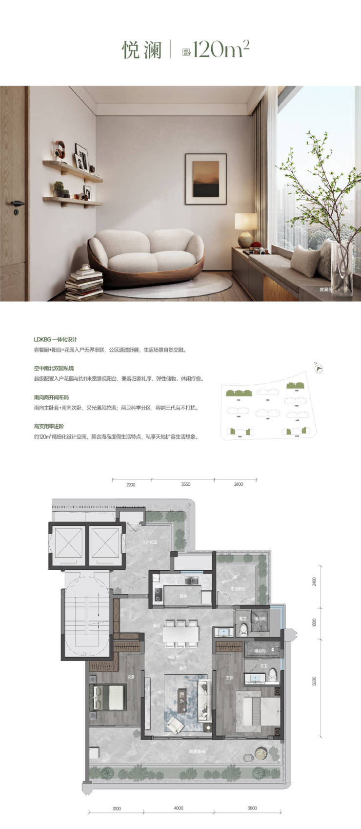 •空中客厅:创新“景观客厅”概念,让花园成为家的第二会客厅,繁华中移步见绿、抬头遇美