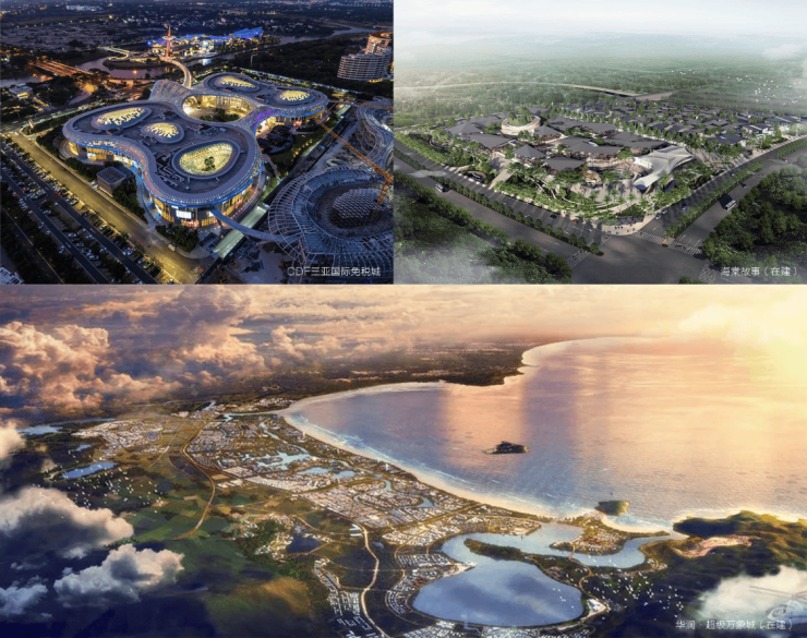 CDF三亚国际免税城、华润超级万象城(在建)、北京SKP商场(规划中)、太古里(在建)、海棠故事(在建)、超级地中海(亚特兰蒂斯二期)、海棠河城市展厅(在建)、海昌梦幻不夜城、Hello Kitty乐园(在建)、迪士尼(规划中)、环球影城(规划中)、桨板中心(在建)、海中海高尔夫俱乐部、68环球美食街……千亿丰盛配套,应有尽有,乐趣无穷。