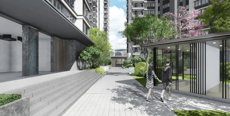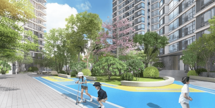 由主题艺术雕塑、情景花园、时尚礼灯精⼼打造⽽成。住⼾既可驻⾜交流互动,也将成为迎接游客的礼仪花园。