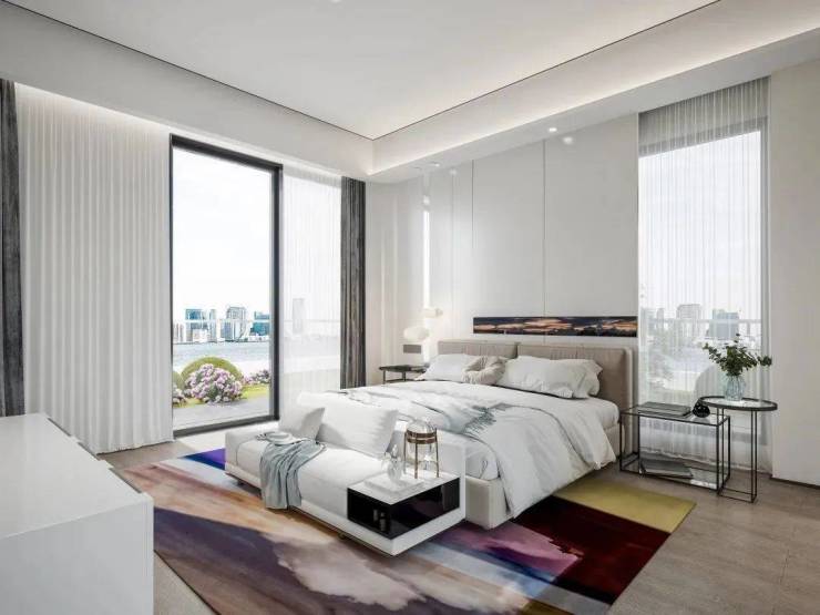 270°空中庭院,不仅让阳光与清风住进来,也让视野延伸出去,实现空间内外之间的衔接与转换,拉近生活与江湾的距离,居于此,每一眼,每一步,每一角落,都是风景。