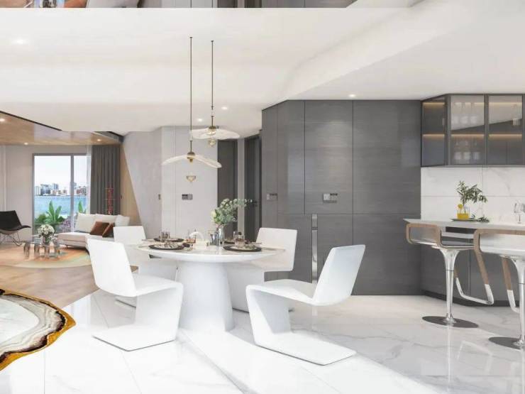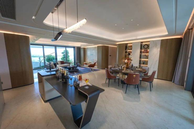 佳元·江畔锦御对于家的美学空间思考,是基于人对视觉的第一触感。在约270㎡样板间中,以游轮度假设计语汇为基础,通过各具型格的设计手法,让空间拥有了更为多元和丰富的表达形式。