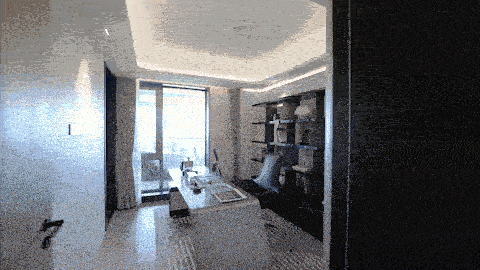 空间入口处左侧,精心设计的多功能灵动场域,以经典的黑白灰为主色调,以摄影为主题陈列,设置错落有致的书架层板,呈现出艺术高雅的空间氛围。人性化配置独立卫浴空间,无论是充当书房,或家庭工作间,或是卧室空间,皆能轻松转换。灵动的姿态,既为场景赋能,又折射出不同的精神栖居选择。