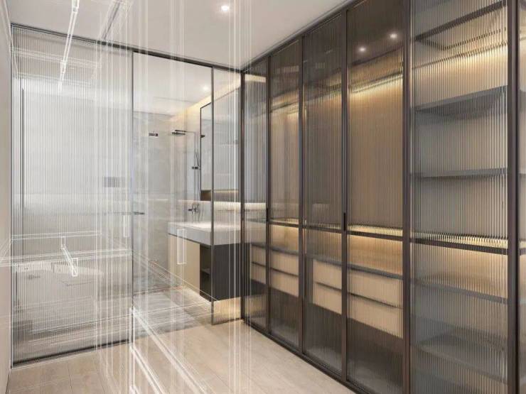 独立卫浴空间,借鉴了高端酒店的设计风格,采用相互独立的双台盆设计,彼此陪伴但又保持适度的距离。贴心配置智能浴缸,当夜幕降临之时,浴缸里来一次身心浸泡,静静眺望窗外的夜色,享受属于自己的片刻时光。淋浴房设计,摈弃臃肿挡水条,极窄边框的玻璃隔断,实现了空间通透感的最大化。严选天然石材墙面,淋浴屏地面抽槽工艺,每一个细节都沉淀着对精致生活的巧思。
