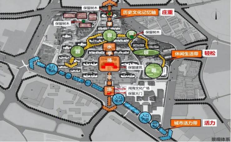 景观规划设计:一轴两带、三场五园